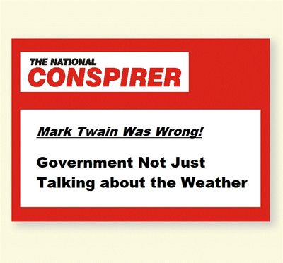 Those able fact checkers at The National Conspirer, who labor day and night to ensure the veracity of every word we publish (when they're not walking into door frames or stumbling down the stairs from lack of sleep), have exposed a gigantic conspiracy hidden right in today's headlines. They've discovered that THE GOVERNMENT IS CONTROLLING THE WEATHER! The two massive hurricanes Katrina and Rita, that have just slammed into the gulf coast, destroying life and property and causing untold suffering, are part of the conspiracy!