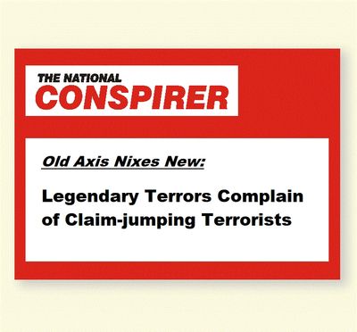 The original North American Axis of Evil, some of whose members predate colonial times, is growing tired of the attention lavished on today's so-called Axis of Evil. Such legendary home-grown terrors as the Jersey Devil and Mothman are beginning to react to the fear of terrorism that seems to be taking hold in this country.