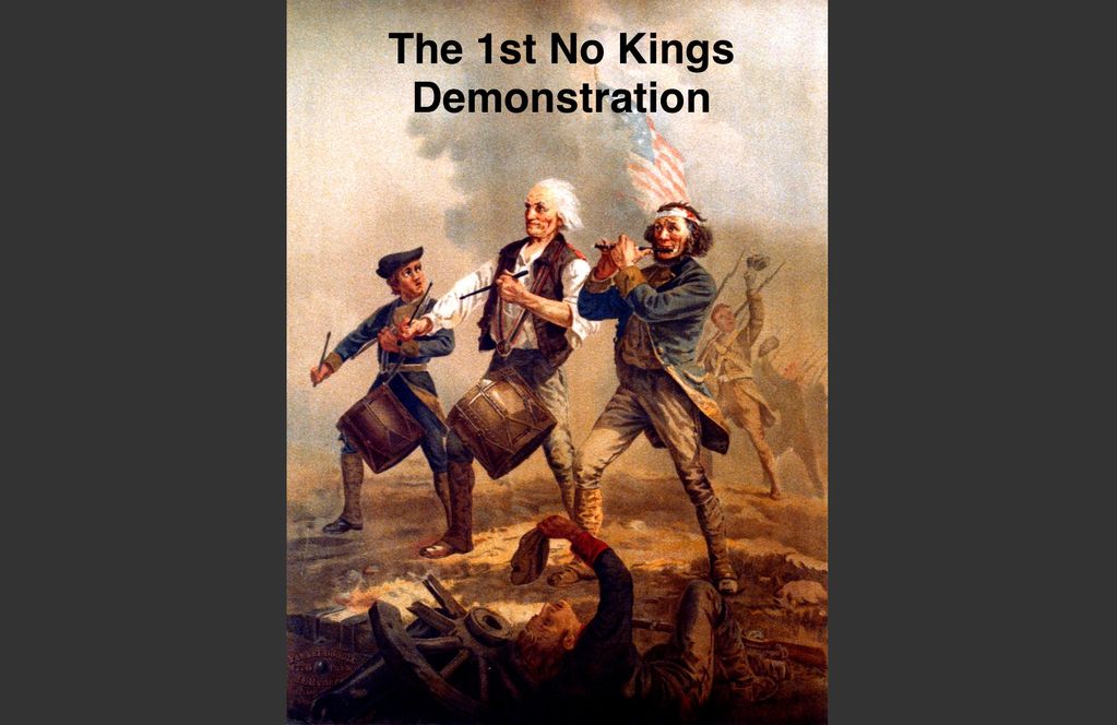 One of two posters I made for our local No Kings rally, which looked to be at least twice as big as in June. I handed this one to someone who didn't have a sign.
