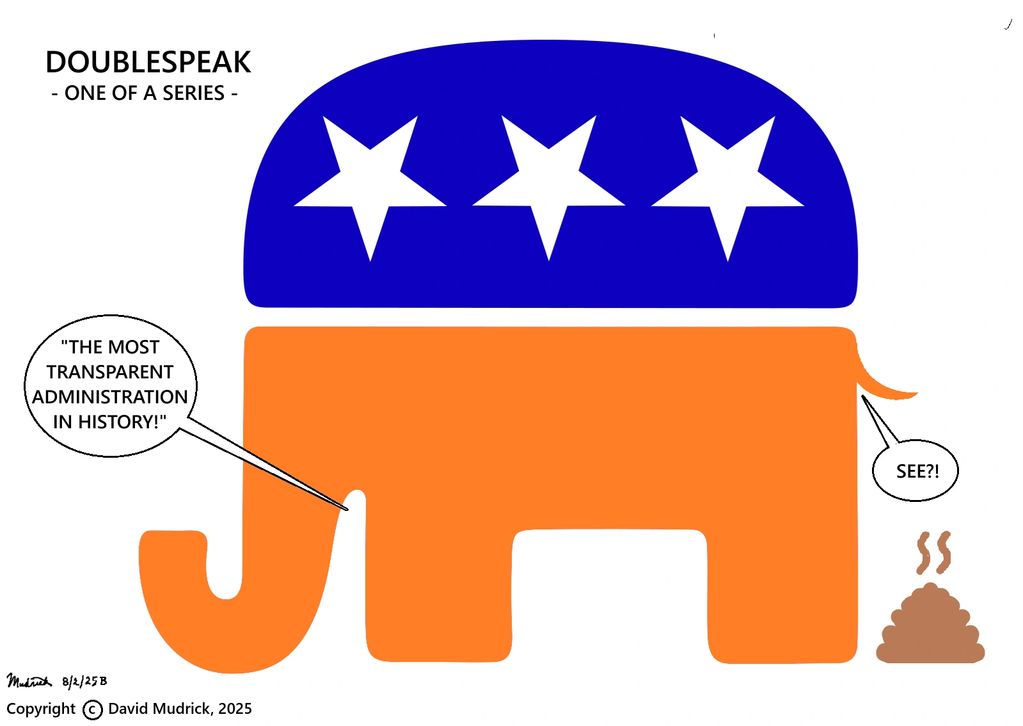 No. 2, literally - Apparently, Trump's minions, including his press secretary, don't know that flaunting the Constitution and blatantly performing your corrupt acts in public view do not meet the definition of transparency.