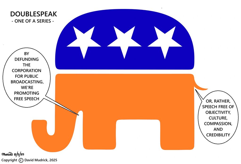 No. 5 - Over the pleas of millions of their constituents, the Republicans have defunded public broadcasting. This may pale in comparison with the redistribution of wealth from poor and middle class citizens to the Donald and his billionaire buddies, but it is a singular attack on free speech, as well as anything not in seeming compliance with the alleged Christian doctrines of his followers.